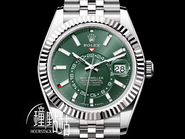 ROLEX 勞力士 Sky-Dweller 336934 天行者 綠色面盤 白K金材質外圈 年曆錶 最新款綠面天行者336934 Cal.9002機芯 錶帶