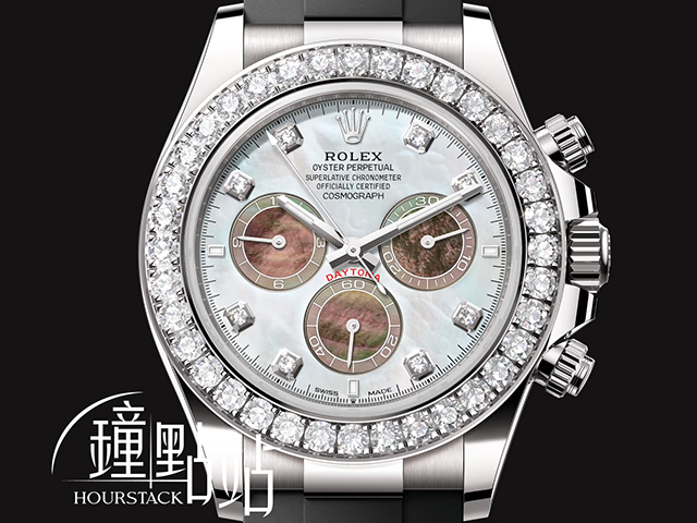 ROLEX 勞力士 Cosmograph Daytona 宇宙計時型 迪通拿 126589 RBR 18K白金材質 原廠鑲嵌36顆大鑽石錶圈 8顆鑽石時標 珍珠貝母面盤