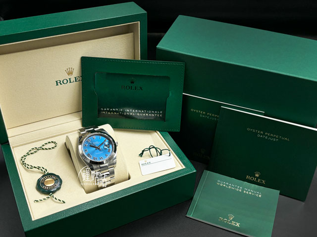 ROLEX 勞力士 DateJust 126300 經典 蠔式日誌型 DJ41 湛藍色太陽紋面盤 羅馬時標 不鏽鋼 2025年新式保卡 蠔式三版錶帶 Paraflex緩震裝置 自動上鍊 41mm 誠摯邀請各位錶迷攜帶 AP、PP、Rolex 等名錶來店交換!本店承諾以最高價格評估,誠信交易,歡迎洽詢。