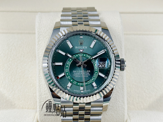 ROLEX 勞力士 Sky-Dweller 336934 天行者 綠色面盤 白K金材質外圈 年曆錶 最新款綠面天行者336934 Cal.9002機芯 錶帶
