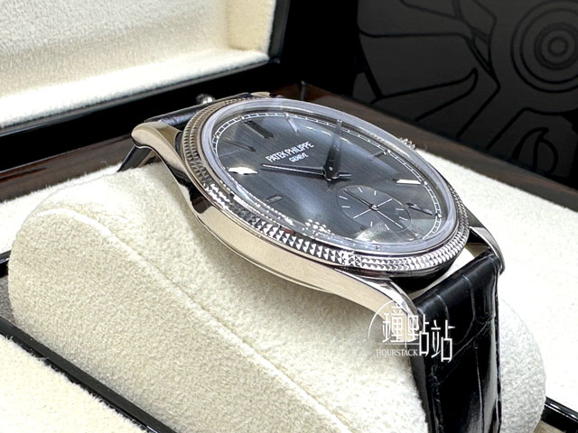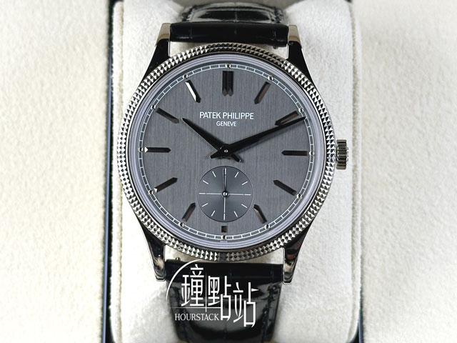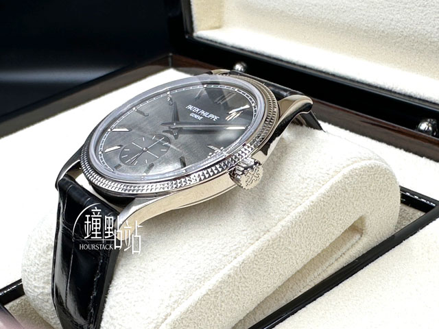 Patek philippe 百達翡麗 PP Calatrava系列 6119G-001 炭灰色垂直緞紋面 正裝錶 小秒針 18K白金材質 炭灰色垂直緞紋面 巴黎釘紋雕飾錶圈