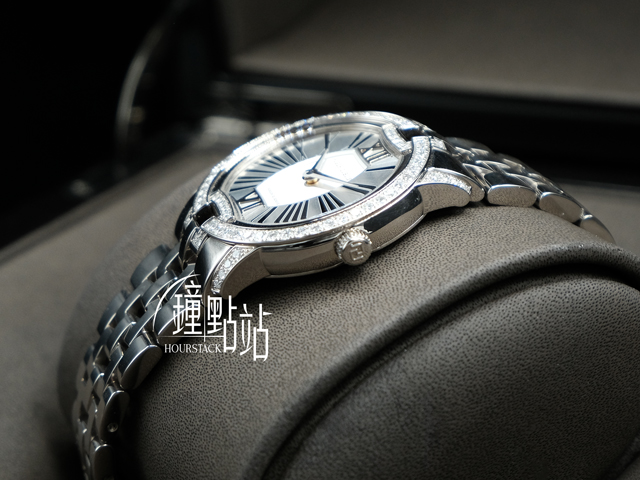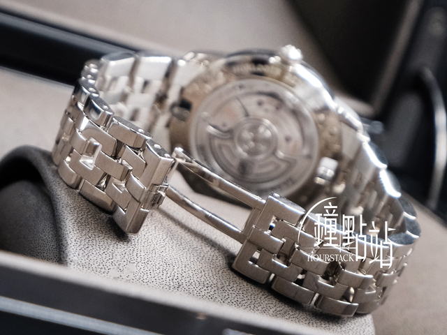 18K白金錶殼、上弦錶冠、摺疊帶扣、錶鍊帶 / 原廠鑲嵌82顆鑽石錶圈(總約1.60克拉) / 藍寶石水晶玻璃 / 透明底蓋 |