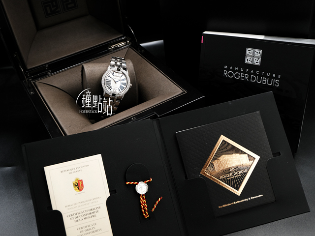 羅杰杜彼原廠RD821自動上鍊機械機芯 / 防水深度30米 / 時、分二針時間指示 / 動力儲存48小時