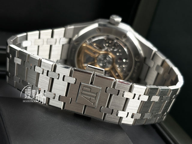功能: 愛彼原廠4302型自動上鍊機械機芯 / 時、分、秒大三針時間指示 / 日期窗顯示 / 防水深度50米 / 動力儲存70小時