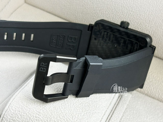 碳纖維+不鏽鋼PVD材質錶殼、錶背、錶圈、穿戴針扣 / 原廠黑色橡膠錶帶 / 藍寶石水晶玻璃 / 實底蓋