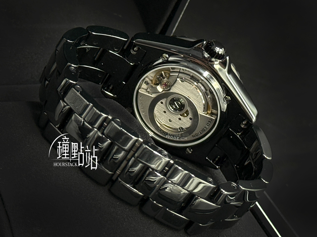 香奈兒Caliber12.1自動上鍊機械機芯 / 時、分、秒大三針時間指示 / 4~5點鐘位置日期窗 / 防水深度200米 / 動力儲存70小時