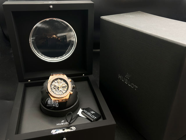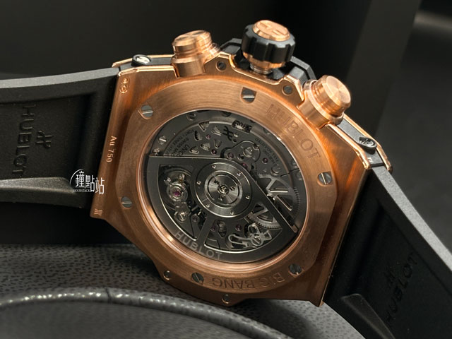 宇舶原廠HUB1280UNICO自動上鍊機械機芯 / 動力儲存72小時 / 時、分、小秒針時間指示 / 日期窗顯示 / 防水深度100米 / 30分鐘Flyback飛返計時功能 / 三點鐘方向60秒小秒盤 |