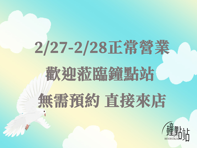 2/27-2/28 鐘點站正常營業