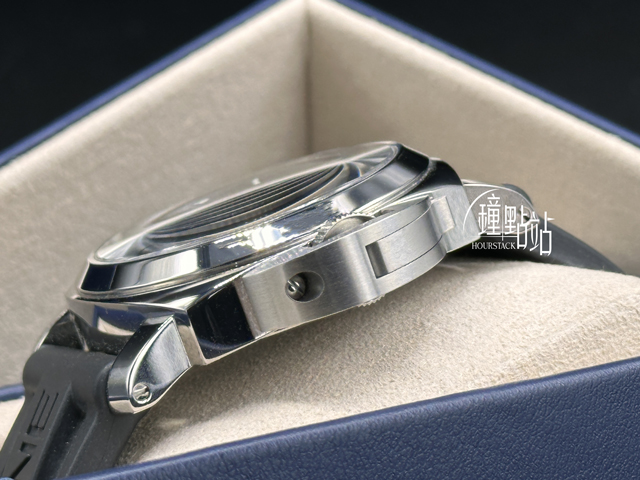 316L不鏽鋼材質錶殼、專利護橋錶冠鎖、梯形磨砂鈦金屬錶扣 / 原廠黑色橡膠錶帶+原廠米黃色小牛皮錶帶 / 藍寶石水晶玻璃 / 實底蓋