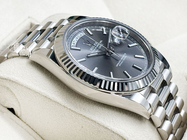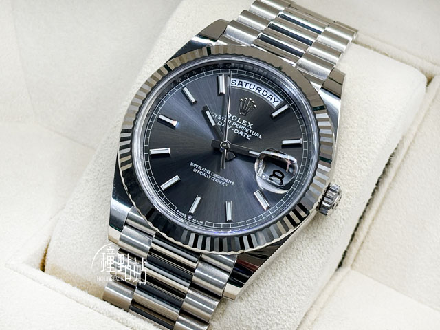 | ROLEX 勞力士 Day-Date 40 星期日曆型 228239 石板灰色面盤 經典三角坑紋錶圈 2021年新式保卡 全新未使用品 DD40 羅馬立體時標 自動上鏈 40mm 誠摯邀請各位錶迷攜帶 AP、PP、Rolex 等名錶交流!本店承諾以最高價格評估,歡迎洽詢。 |