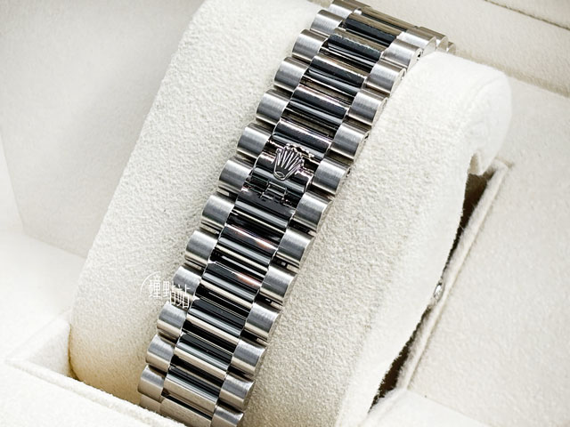 18K白金錶殼、旋入式錶冠、元首型(President)錶鍊帶、摺疊皇冠帶扣 / 經典三角坑紋錶圈 / 抗磨損藍寶石水晶玻璃 / 順磁性藍色Parachrom游絲 / 實底蓋 |