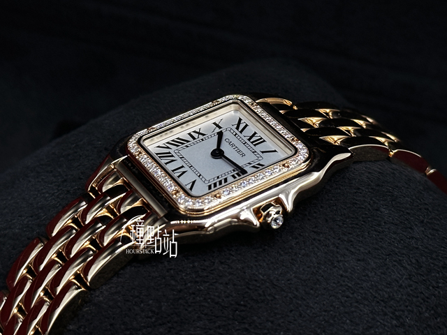 原鑲鑽圈 原鑲鑽錶冠 經典方形設計 玫瑰金