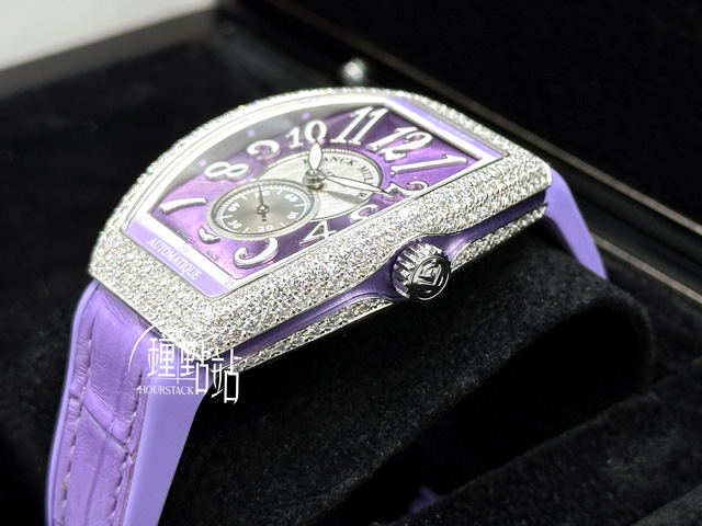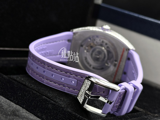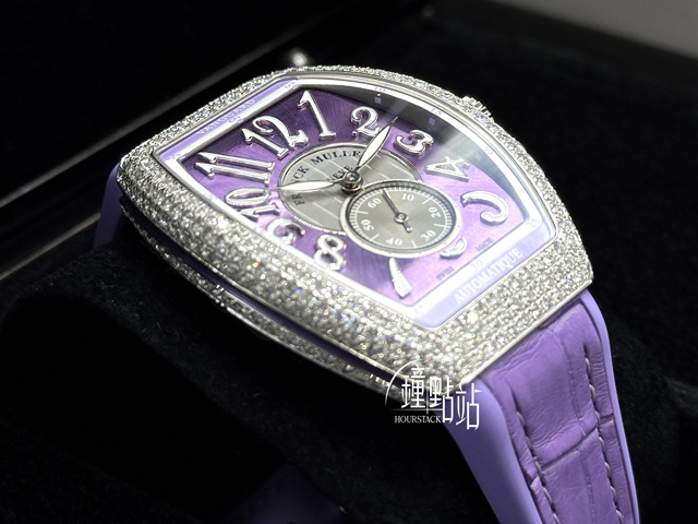 Franck Muller 法蘭穆勒 Vanguard Lady Slim Vintage V 35 S S6 AT FO VIN D AC 紫羅蘭色面盤 手工原鑲308顆頂級天然鑽石(約4.44克拉) FM 小秒針 V35SS6ATFOVINDRAS 不鏽鋼 2025年保單 自動上鍊 35x46.3mm