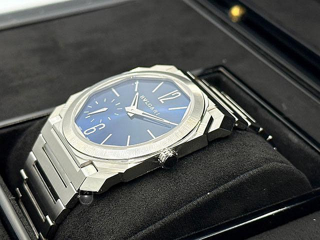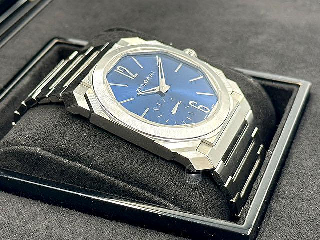 BVLGARI 寶格麗 Bulgari Octo Finissimo系列 103431 藍色太陽放射紋面盤 經典八角形多稜角設計錶框 小秒針