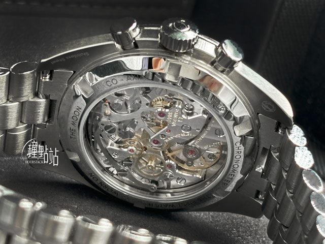 歐米茄原廠3861型手上鏈機械機芯 / 時、分、小秒針時間指示 / 30分鐘、12小時計時碼表功能 / 防水深度50米 / 九點鐘方向60秒小秒盤 / 動力儲存50小時