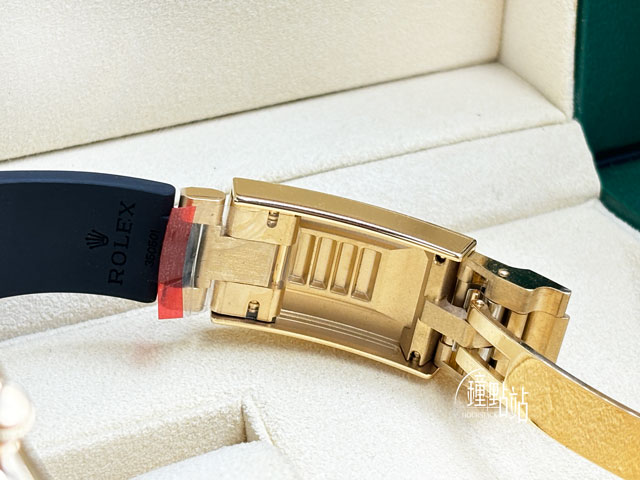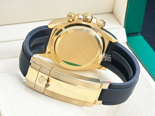 18K黃金材質錶殼、摺疊帶扣、旋入式錶冠 / 黑色Cerachrom陶瓷計速儀刻度錶圈 / 原廠勞力士新式黑色Oysreflex橡膠錶帶 / 藍寶石水晶玻璃鏡面 / 防偽內圈