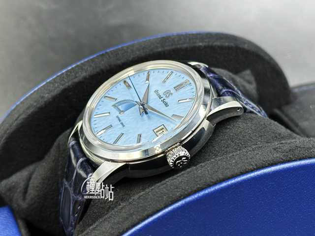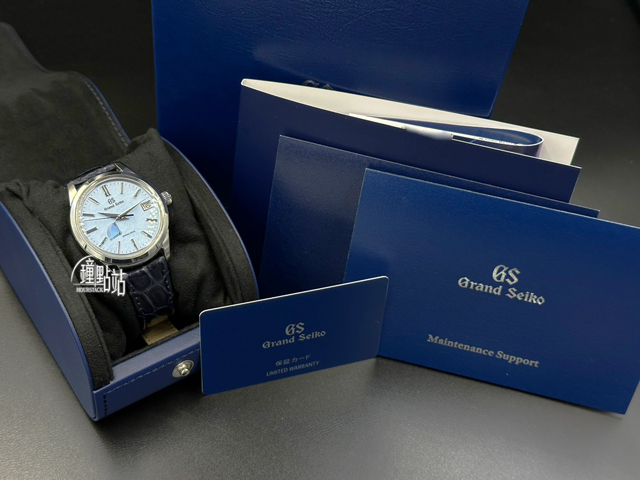 GRAND SEIKO 特級精工 Elegance Collection 藍雪姬 SBGA407 藍色雪花面盤 三日鍊 Spring Drive 日期窗 2026年保卡 不鏽鋼 大三針 動力儲存72小時 自動上鍊 40.2mm