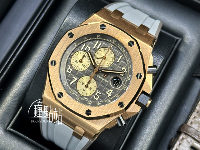 | AUDEMARS PIGUET 愛彼 Royal Oak 皇家橡樹 26470OR 離岸型 計時碼表 灰色橡膠錶帶 18K玫瑰金 2018年保卡 絕版珍藏品 26470OR.OO.A125CR.01 獨特設計錶圈 日期窗 自動上鍊 41mm 誠摯邀請各位錶迷攜帶 AP、PP、Rolex 等名錶交流!本店承諾以最高價格評估,歡迎洽詢。 |