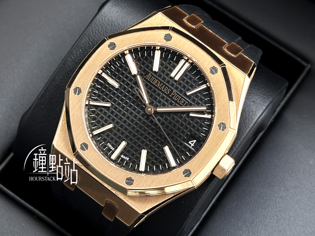 18K玫瑰金 日常防水 15510 OR 大格紋 黑面 AP