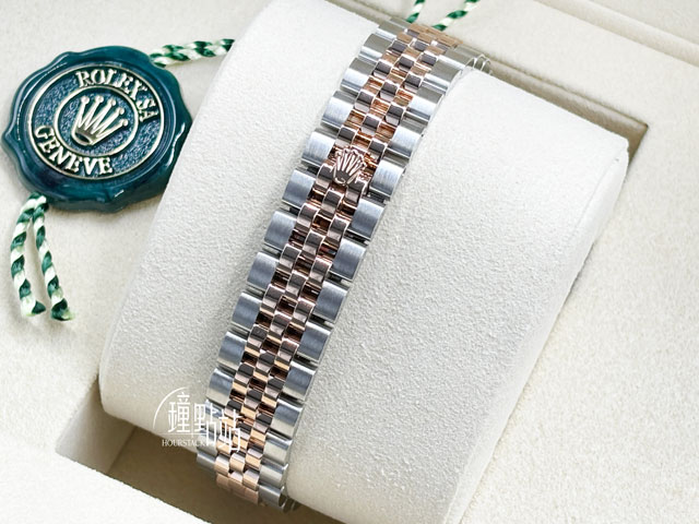 永恒玫瑰金+904L不鏽鋼錶殼、隱蔽式皇冠摺疊帶扣、旋入式錶冠、五株紀念型(Jubilee)錶帶 / 經典三角坑紋錶圈 / 抗磨損藍寶石水晶玻璃 / 實底蓋