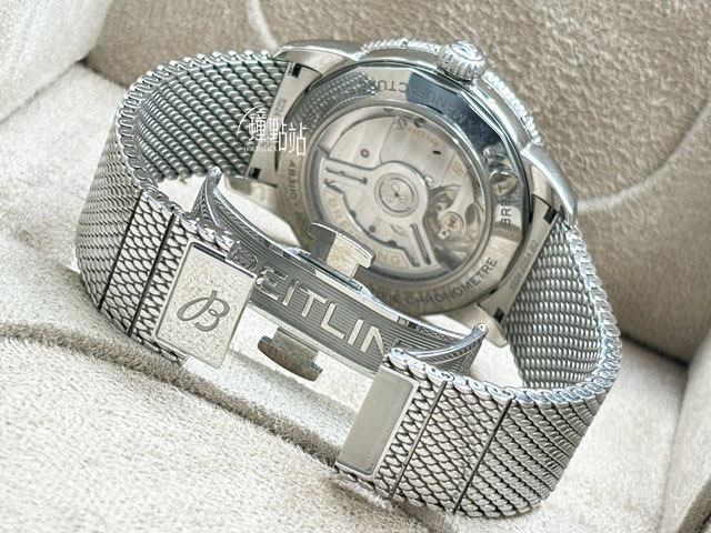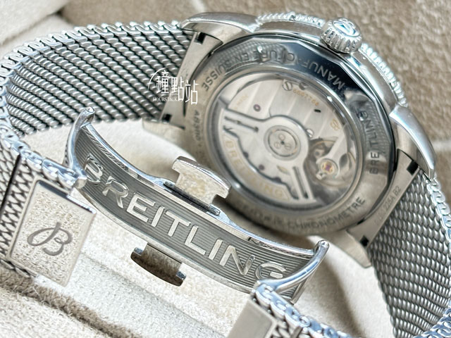 百年靈原廠自製B31自動上鍊機械機芯 / 時、分、大三針時間指示 / 日期窗顯示 / 動力儲存78小時 / 防水深度200米