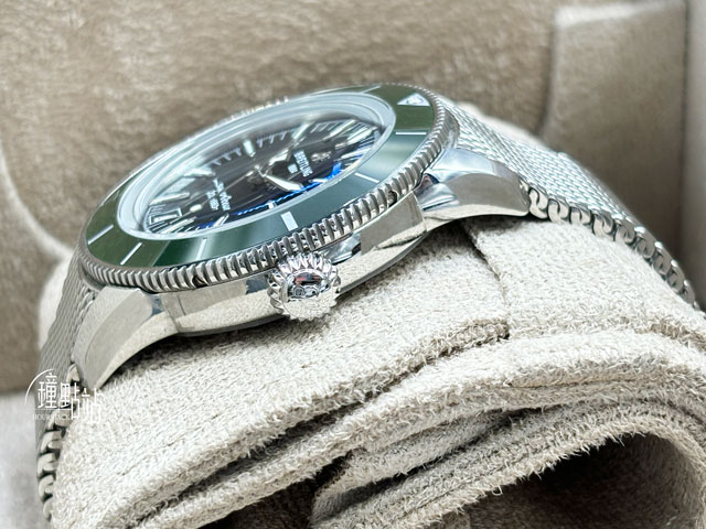 不鏽鋼錶殼、旋入式錶冠、摺疊帶扣、錶鍊帶 / 棘輪式單向陶瓷錶圈 / 藍寶石水晶玻璃鏡面 / 透明底蓋