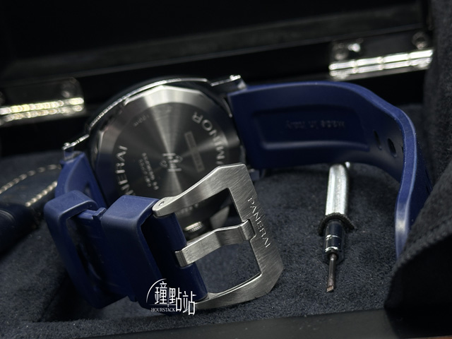 不鏽鋼 藍色皮錶帶 藍色橡膠錶帶 PAM 1085 手動上鍊 44mm