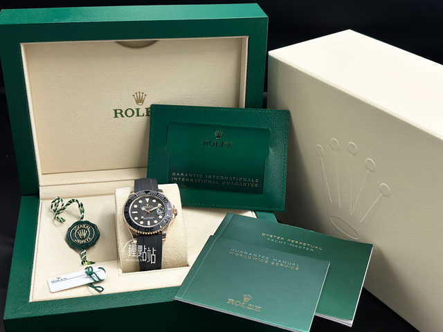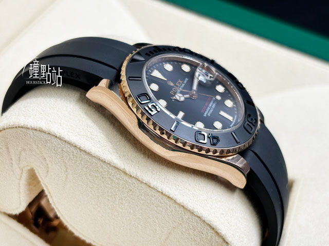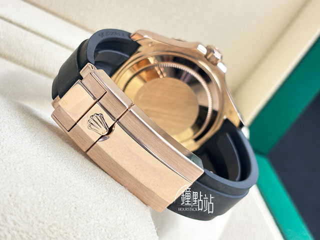 18K玫瑰金錶殼、蠔式保險扣、旋入式錶冠 / Cerachrom霧黑陶瓷刻度雙向旋轉錶圈 / 原廠黑色Oysterflex橡膠錶帶搭配Glidelock延展錶扣 / 藍寶石水晶玻璃鏡面 / 實底蓋