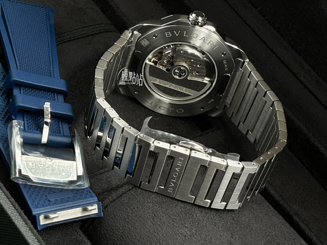 寶格麗原廠BVL191自動上鍊機械機芯 / 時、分、秒大三針時間指示 / 防水深度100米 / 日期窗顯示 / 動力儲存42小時 / 快拆式錶帶系統
