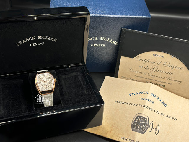 Franck Muller 法蘭穆勒 Vanguard Lady V32SCATF 白色面盤 18K玫瑰金錶殼 立體數字時標 2026年保單 新錶定價$ 620,000  FM 大秒針 石英機芯 32x42.3mm