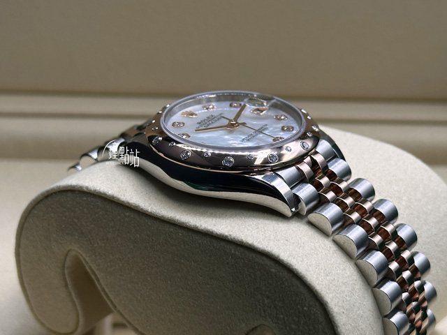 珍珠母貝面盤面盤 / 玫瑰金指針、原廠鑲嵌10顆鑽石時標 |