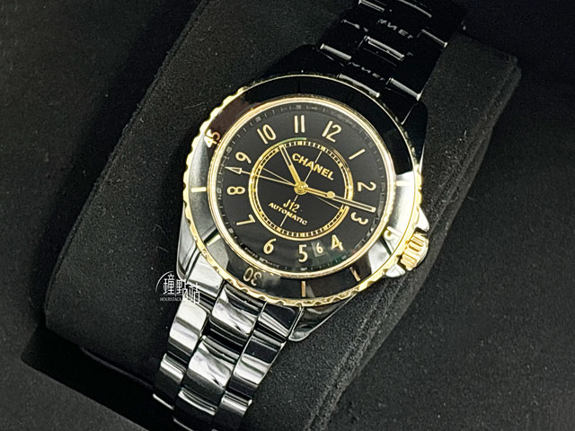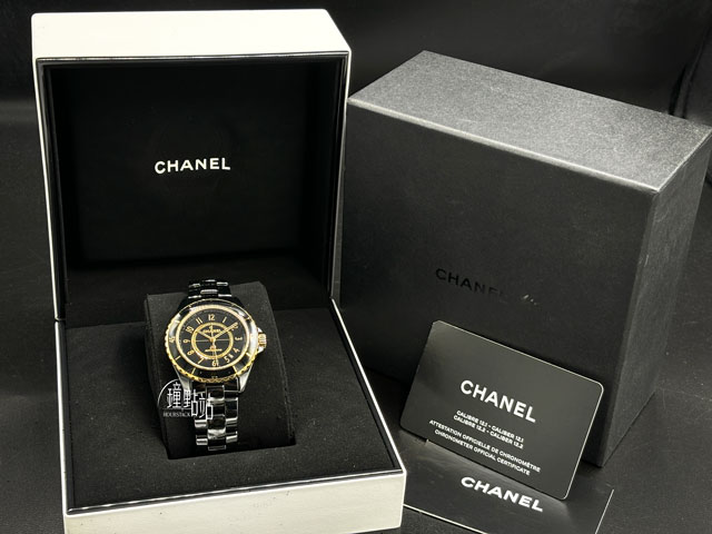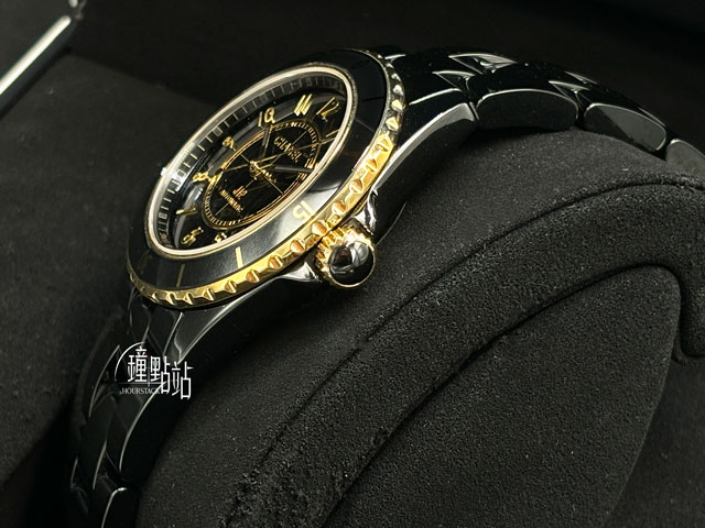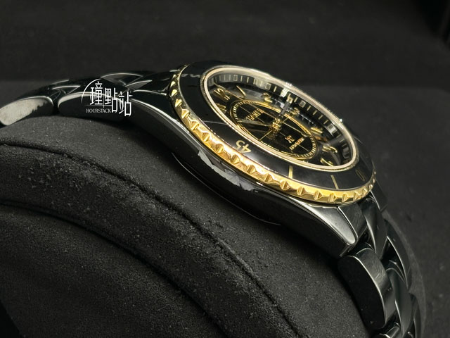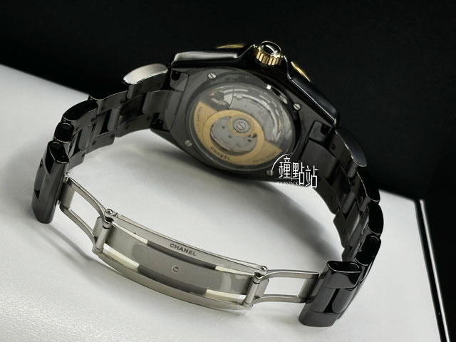 CHANEL 香奈兒 J12 Calibre 12.1 黑色高科技精密陶瓷 H9541 經典 黃K金 大三針 透明錶背款