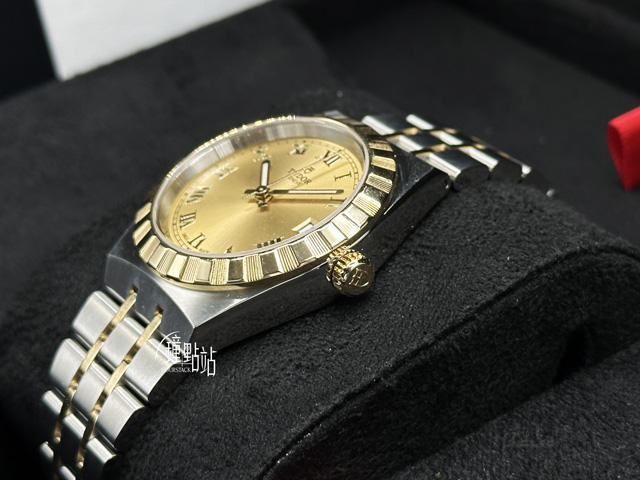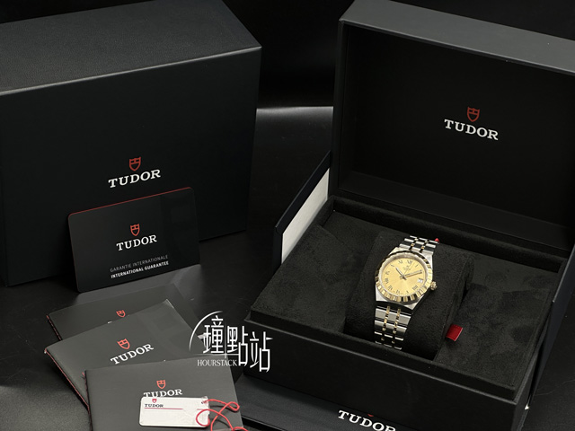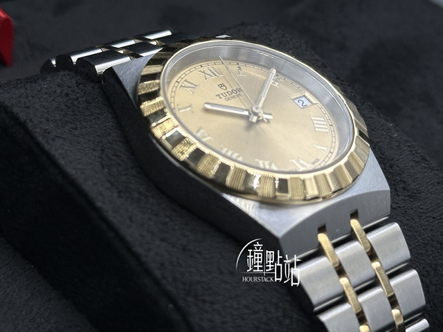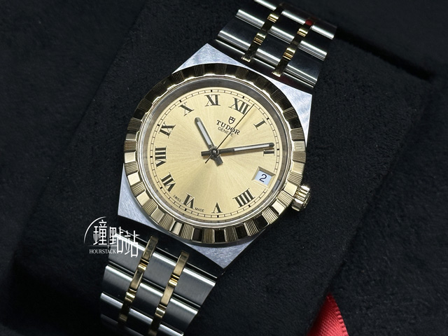 TUDOR 帝舵 ROYAL 皇家系列 28403 最新款 半金 香檳色面盤 鏈帶款 羅馬時標 不鏽鋼 2026年保卡 m28403-0004 日期窗 大三針 自動上鍊 34mm
