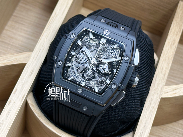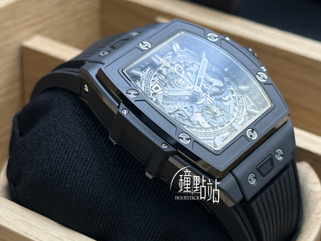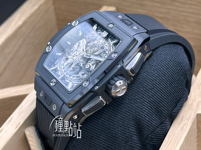 HUBLOT 宇舶 Spirit of Big Bang Black Magic 大爆炸 靈魂系列 642.CI.0170.RX 黑魔法 小秒針 計時碼表 鏤空面盤 黑陶瓷 酒桶型