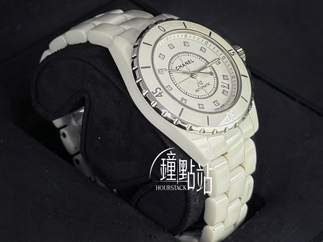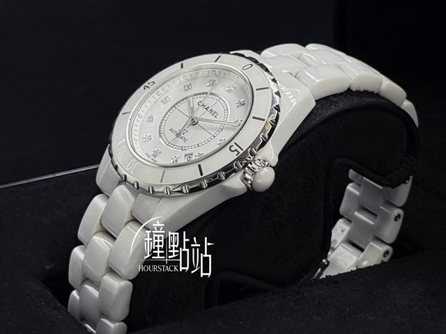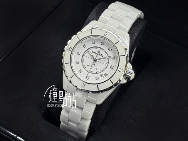 CHANEL 香奈兒 Caliber J12 White Ceramic H1629 原鑲鑽石時標面盤 日常百搭款 白陶瓷 經典 大三針 專利不鏽鋼蝴蝶扣 單向旋轉錶圈 自動上鍊 38mm