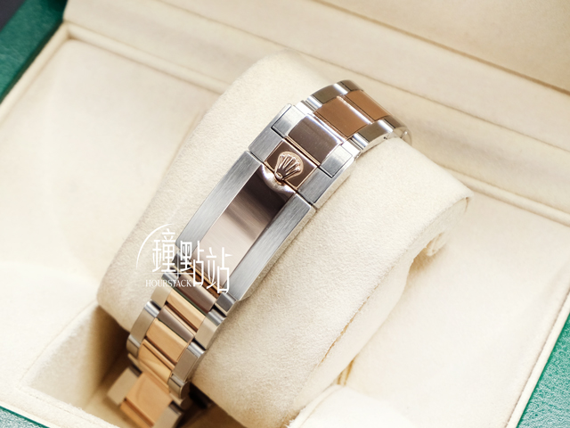 材質: 18K永恒玫瑰金+蠔式鋼錶殼、摺疊帶扣、旋入式錶冠、錶鍊帶、雙向旋轉60分鐘刻度錶圈 / 藍寶石水晶玻璃 / 防偽內圈 / 實底蓋