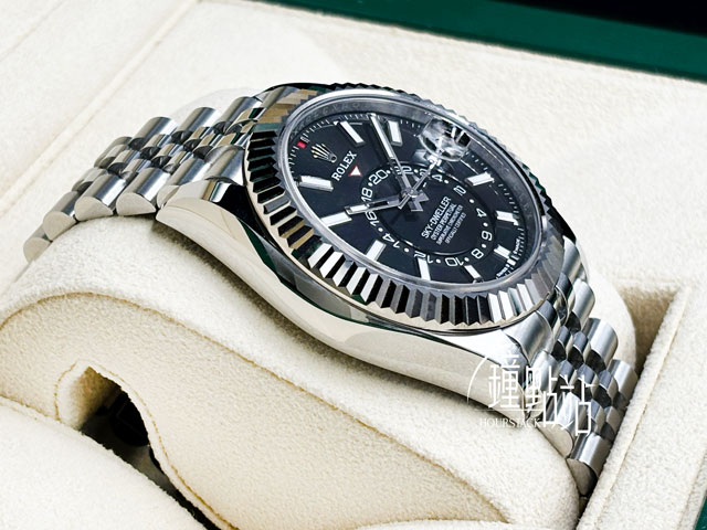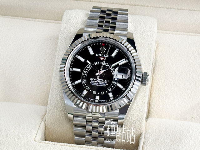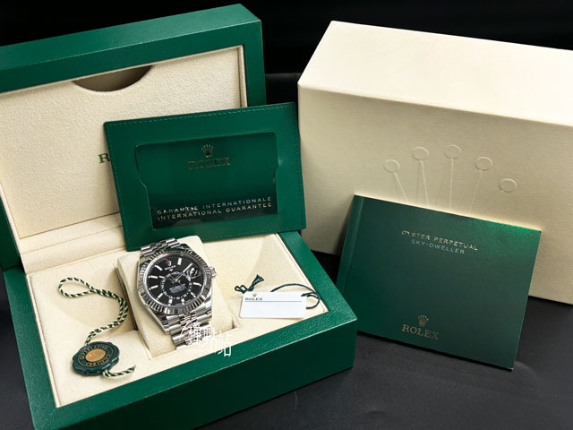 ROLEX 勞力士 Sky-Dweller 336934 天行者 黑色面盤 經典三角坑紋錶圈 年曆錶 紀念型(Jubilee)五株 錶帶