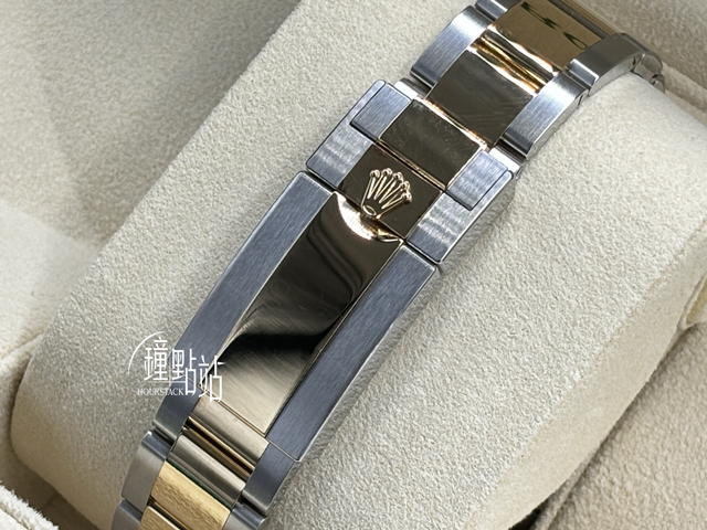 18K黃金+904L精鋼材質錶殼、錶帶、摺疊帶扣、旋入式錶冠、測速計刻度錶圈 / 藍寶石水晶玻璃 / 防偽內圈
