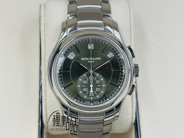 | PATEK PHILIPPE 百達翡麗 PP錶 5905 1A 飛返計時 年曆錶 5905/1A-001 2024年保單 整隻手錶貼膜 極新 最新按動式摺疊帶扣/不鏽鋼鍊帶款 橄欖綠色面盤 42mm 誠摯邀請各位錶迷攜帶 AP、PP、Rolex 等名錶來店交換!本店承諾以最高價格評估,誠信交易,歡迎洽詢。