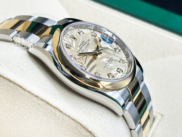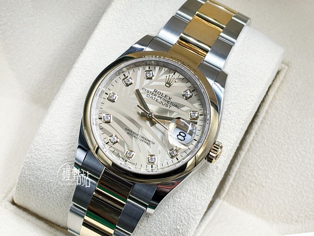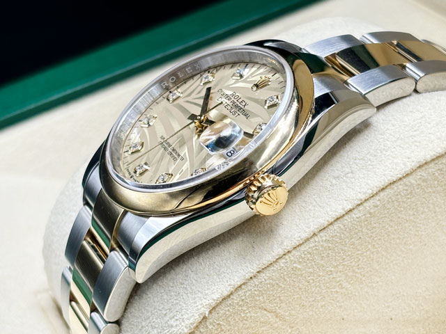 ROLEX 勞力士 Datejust 36 蠔式日誌型 126203 最新款 金色棕櫚葉鑽石時標面盤 半金款 18K黃金