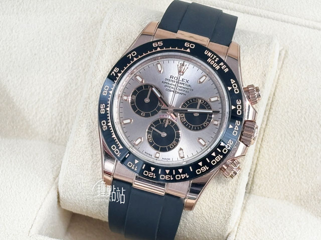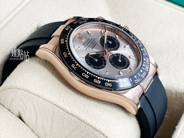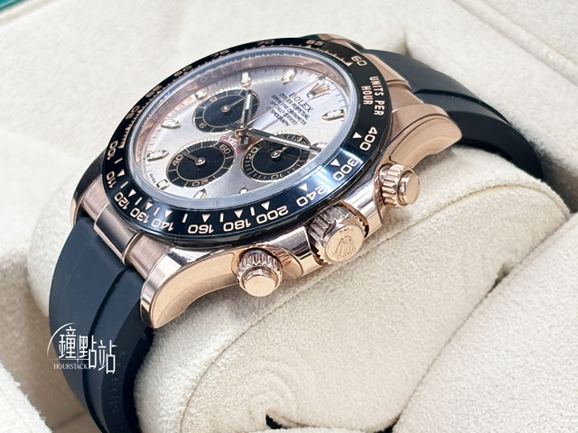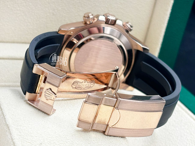 18K永恆玫瑰金材質錶殼、計時按把、摺疊帶扣、旋入式錶冠 / 黑色陶瓷測速計刻度錶圈 / 原廠黑色Oysterflex橡膠錶帶 / 抗磨損藍寶石水晶玻璃鏡面 / 防偽內圈 / 實底蓋 |