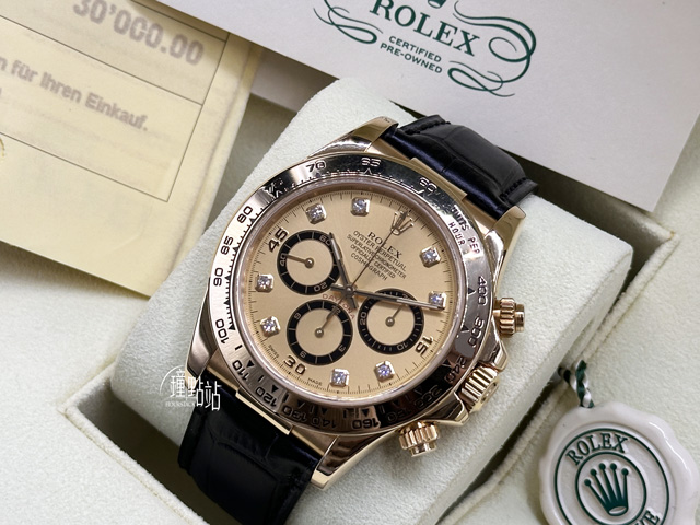勞力士原廠4030自動上鍊機械機芯 / 時、分、小秒針時間指示 / 30分鐘、12小時計時碼表功能 / 防水深度100米 / 動力儲存約50小時 / 六點鐘方向60秒小秒盤