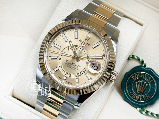 ROLEX 勞力士 SKY-DWELLER 天行者 336933 年曆 半金 複雜功能 金色面盤 蠔式 18K黃金 防偽內圈 大三針