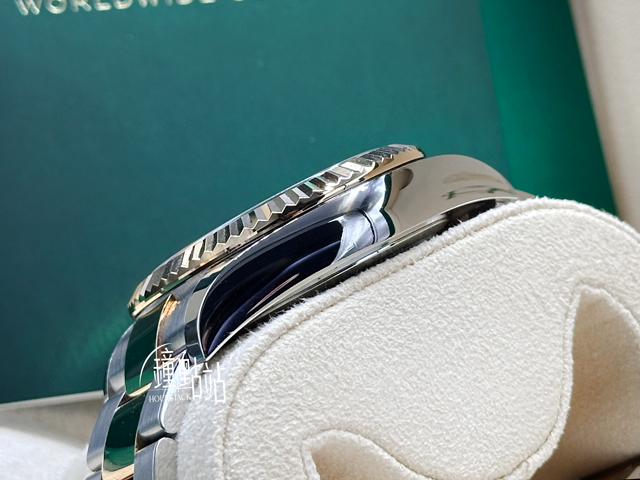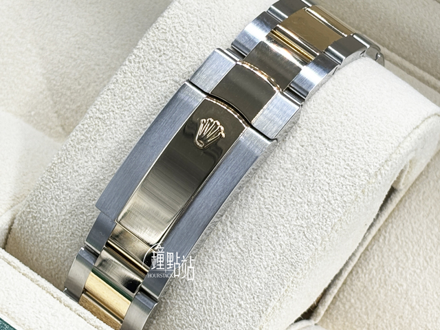 904L精鋼+18K黃金錶殼、錶鍊帶、摺疊帶扣、旋入式錶冠、Ring Command三角坑紋雙向旋轉錶圈 / 藍寶石水晶玻璃鏡面 / 防偽內圈 / 實底蓋
