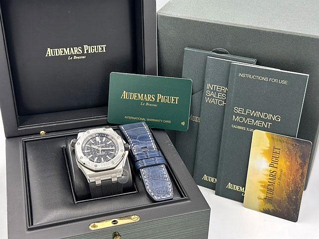 愛彼錶原廠cal.3120自動上鍊機械機芯 / 時、分、秒大三針時間指示 / 日期窗顯示 / 潛水定時裝置 / 300米防水